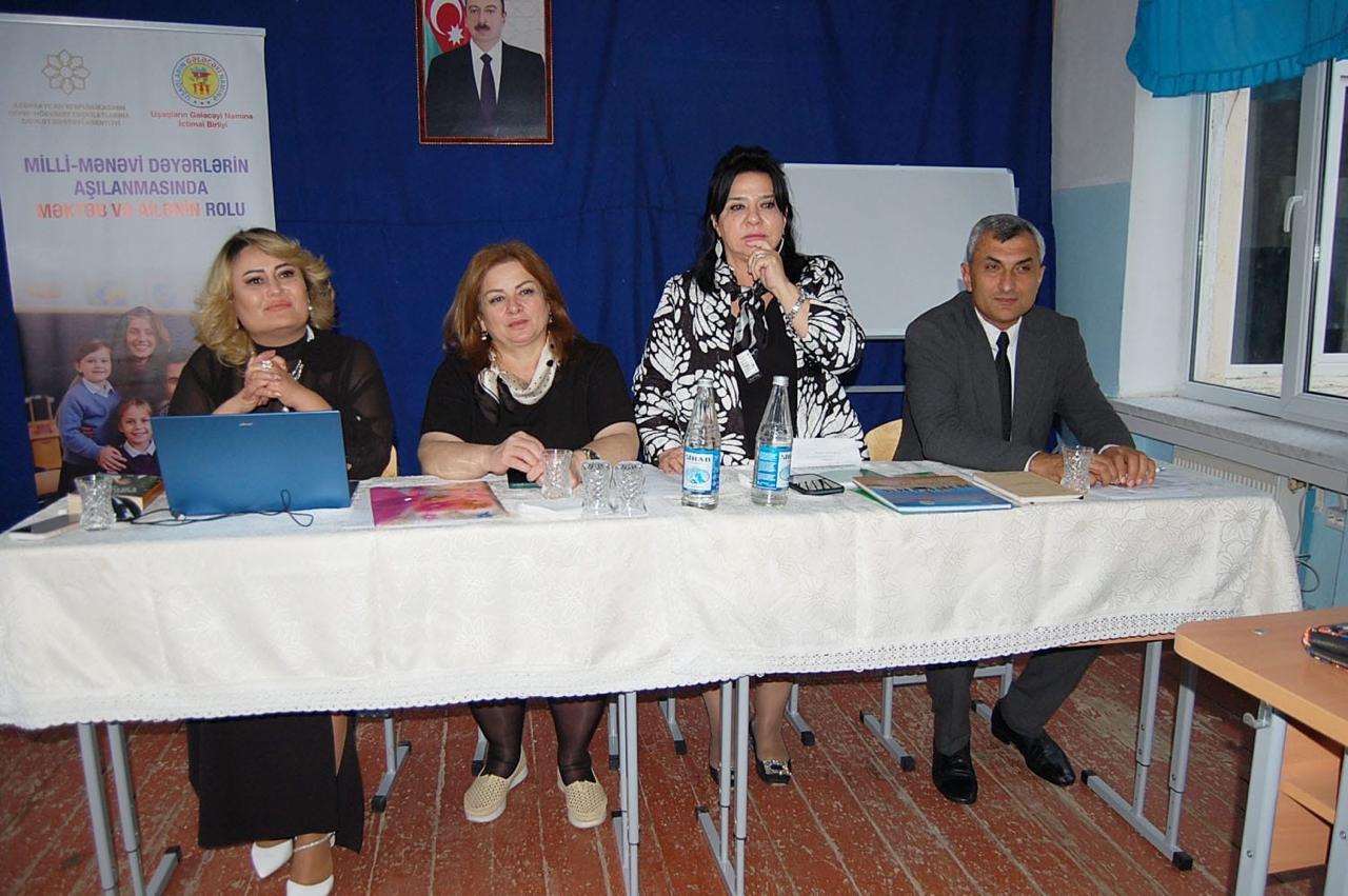 “Uşaqların Gələcəyi Naminə” İctimai Birliyi Azərbaycan Respublikasının QHT-lərə Dövlət Dəstəyi Agentliyinin maliyyə dəstəyi ilə “Mili-mənəvi dəyərlərin aşılanmasında məktəb və ailənin rolu” adlı layihəsi çərçivəsində növbəti tədbirini Tərtər Şəhər 2 Saylı Məktəb-liseydə keçirib.